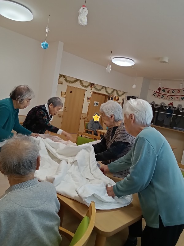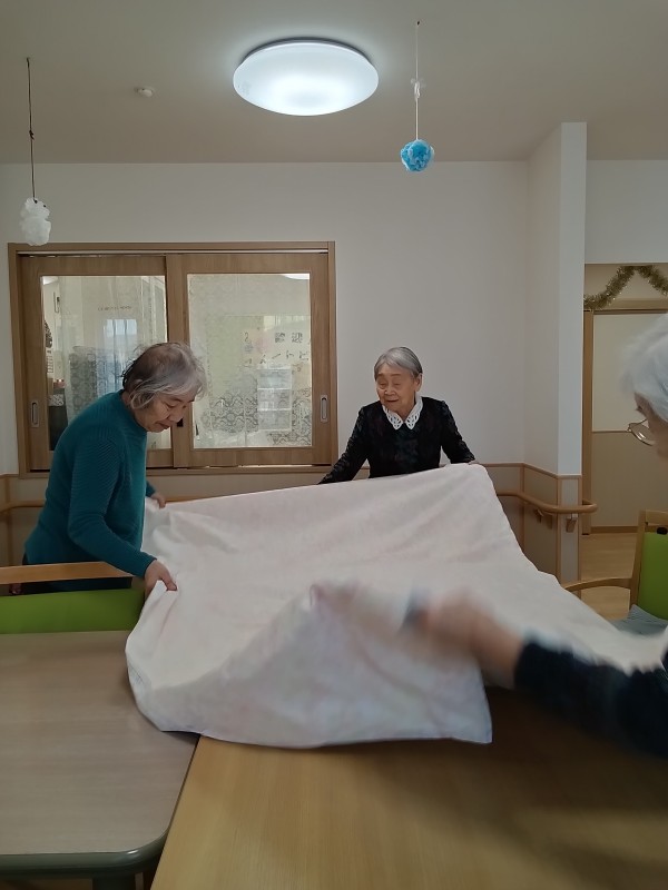 入居者様に掛布のシーツを交換を手伝って頂きました!