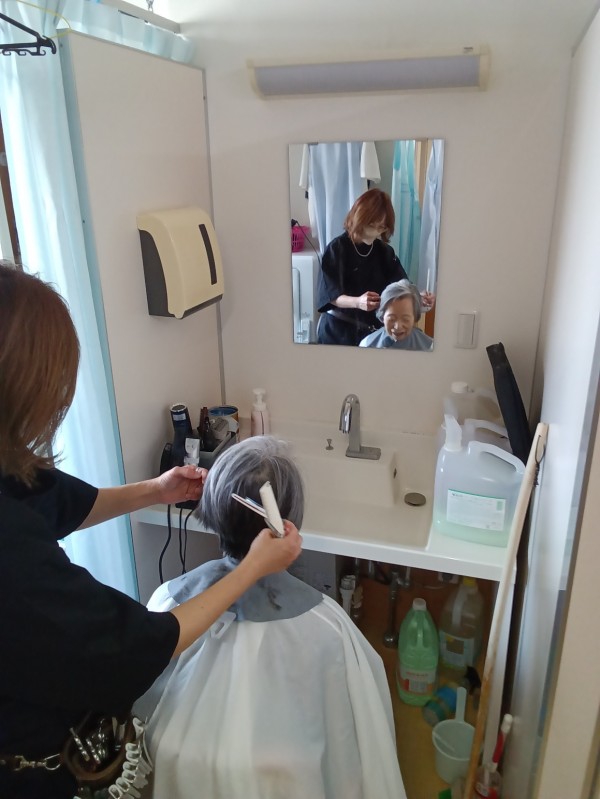 本日は訪問理美容の日となっておりまして、希望者の方がヘアーカットをされております。