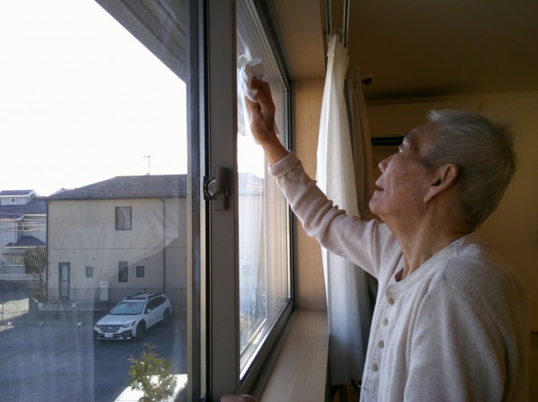 背の高い男性は、女性職員が背伸びしても届かなかった窓ふきを端までして下さいました。
