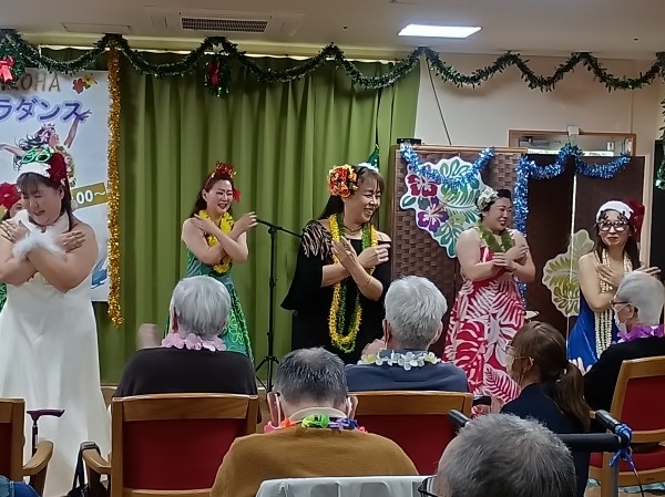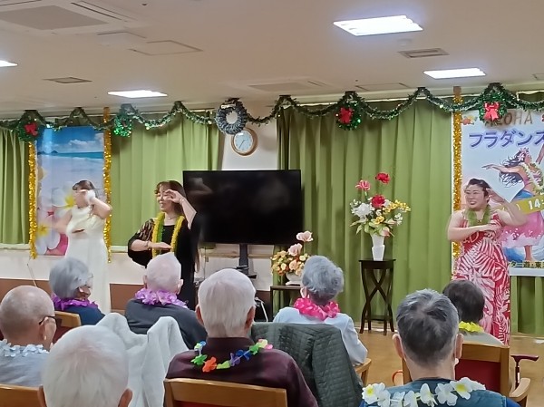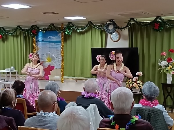 6曲程の音楽に合わせてのフラダンスに、クリスマスメドレーに合わせて踊りを拝見しました!