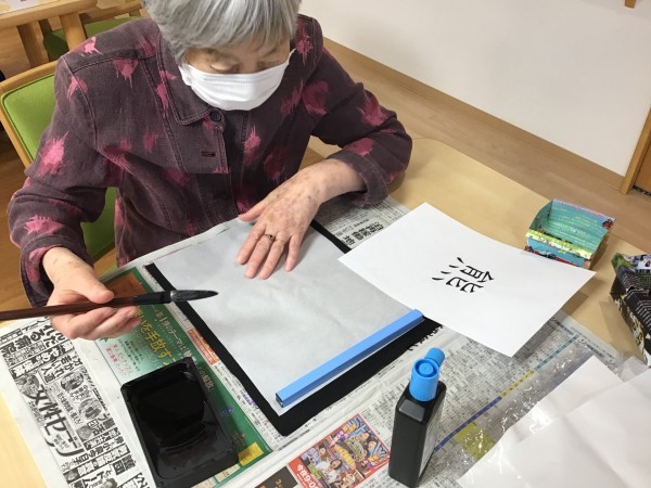 書道の時間で「熊」と「米」「馬」など書きました♪