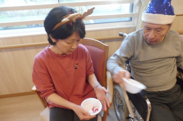 (^^♪ 12月恒例の「クリスマス会」が催されました。皆さん、クリスマスの装いでご参加です。(*^^)v