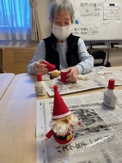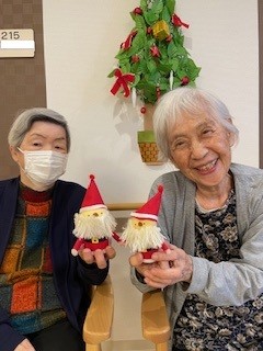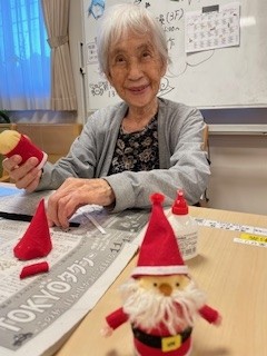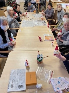 それぞれご自分で作ったサンタさんを手にしてうれしそうです、お疲れさまでした。