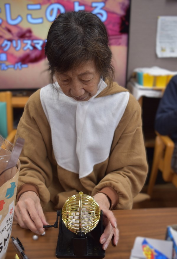 配られたBINGOカードに皆様、目が釘付けでトナカイが大声で言う番号に
