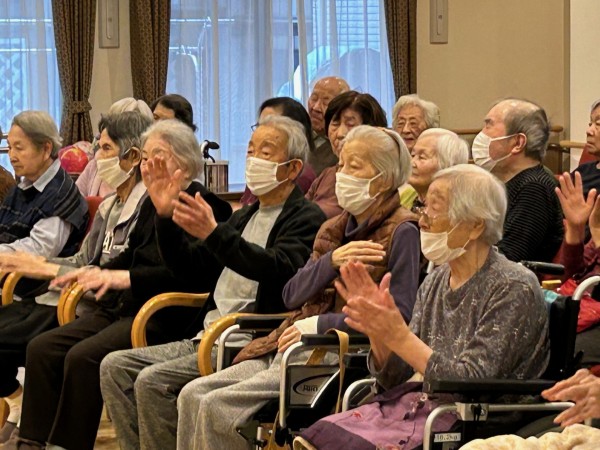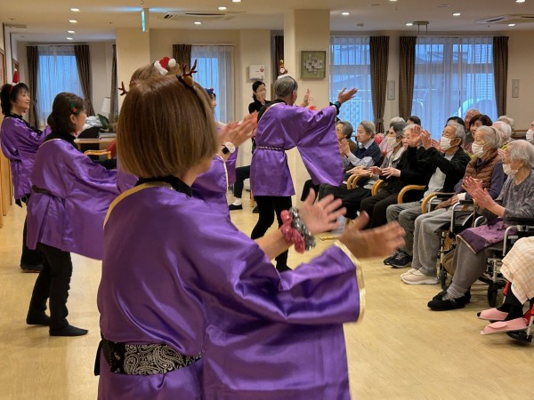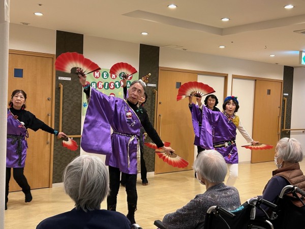 また、クリスマス会では、舞扇様(ボランティア)による素敵な演出を加えた民謡や舞踊、