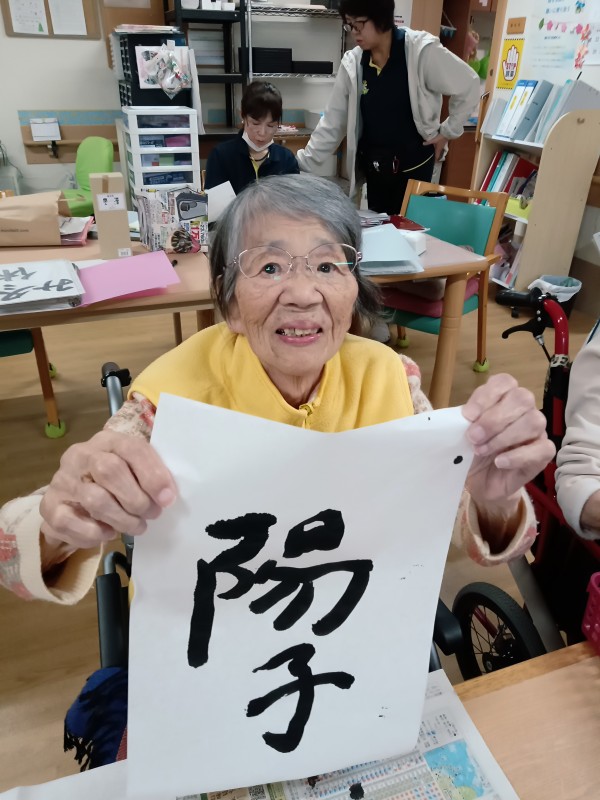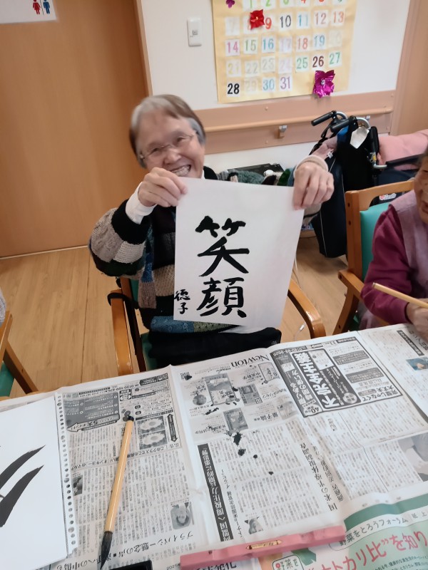 今日のレクリエーションは習字をしてみました。