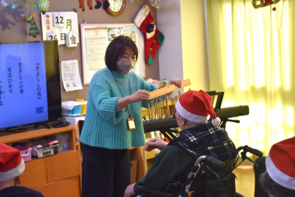「みんなの家・川崎中野島」本日は今年最後の「音楽療法リリムジカ」の時間です。
