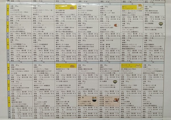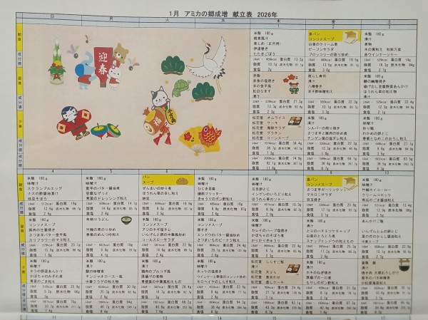 1月の献立表です。