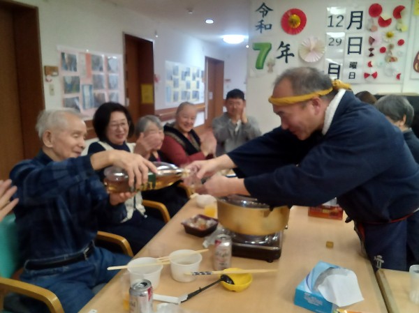 3階はおでんメインでしたが、2階は二種類の鍋で、食材の準備から、御利用者さまと一緒に行い、スタッフから提供されるだけでなく、一体感をもって開催されました(^_^)/~