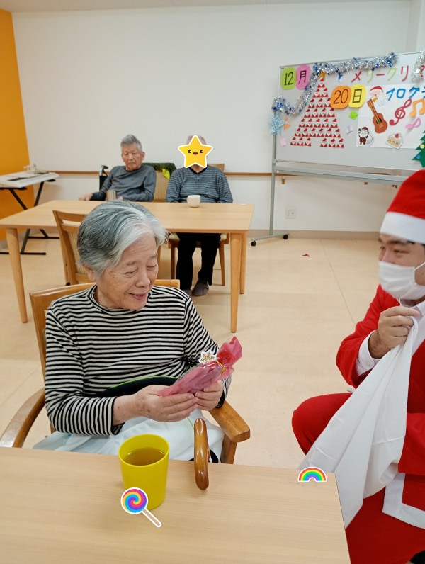歌を歌った後は、サンタクロースからのプレゼントタイム!。