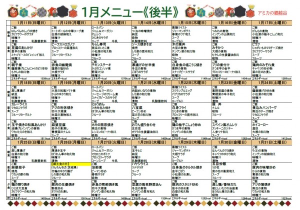 1月の献立表