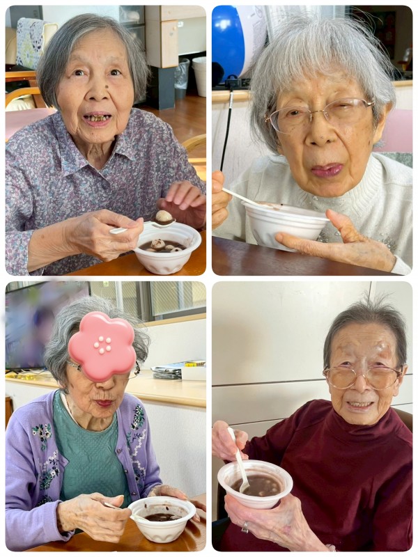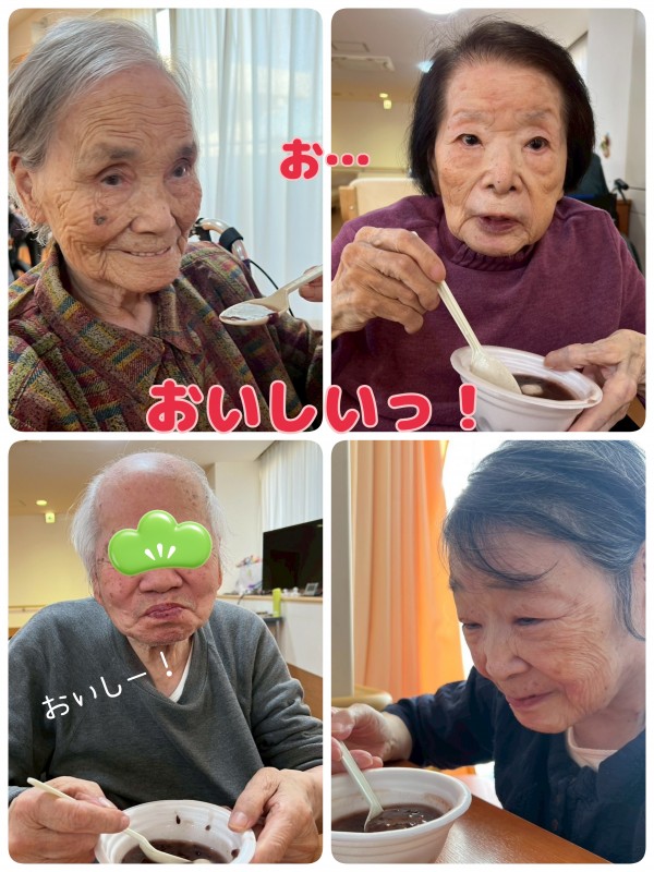 前日から、仕事の合間をぬっては大鍋に向かいコトコトとお汁粉作り。入居者様のためならエンヤコラ〜♪