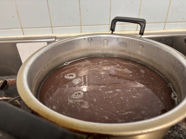 大きなお鍋でお汁粉づくり