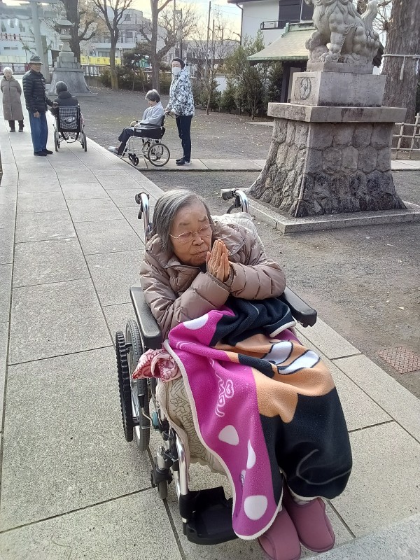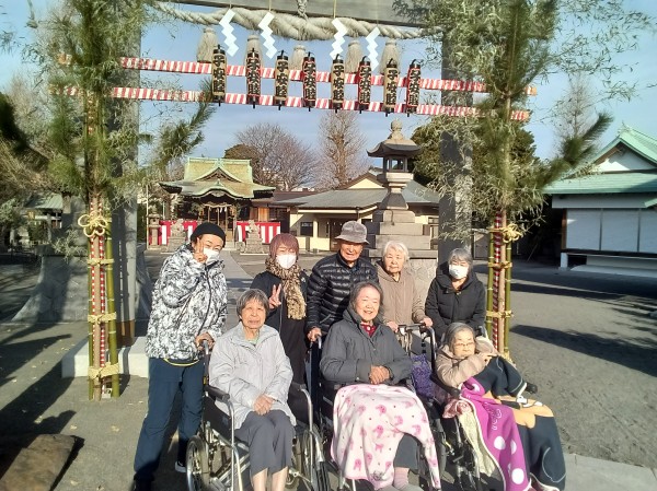普段はあまり、外に出られない方や、外に出たがらない方々も、初詣に行きましょ!とお誘いすると、「お参り?行きたいねぇ」と、二つ返事でお出掛けになりました(*^-^*)