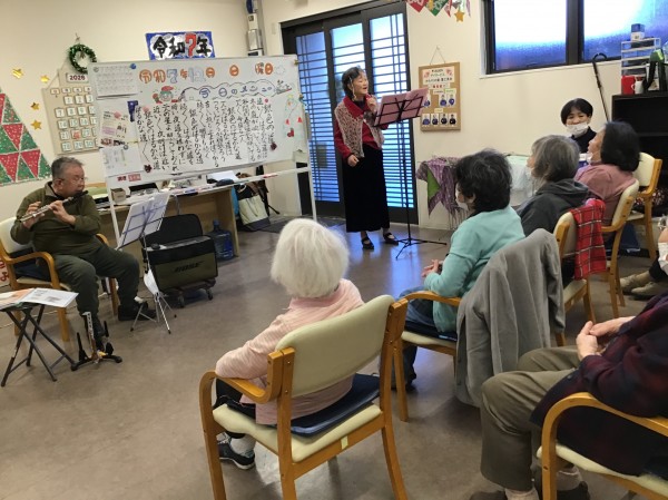フルート演奏・歌を皆様の前で披露してくださいました。ご利用者様も普段聞けない音色に感動されていました。