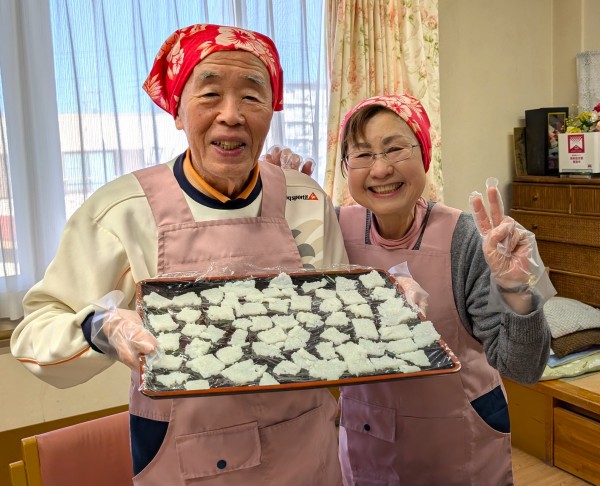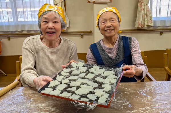 生地がいい感じになってきたら、お餅の形に切っていきます☆