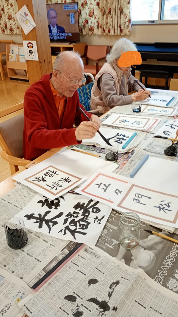 皆様、真剣な眼差しで筆を走らせていました。どんな字を選び、どんな思いを込めて書いたのでしょうか。