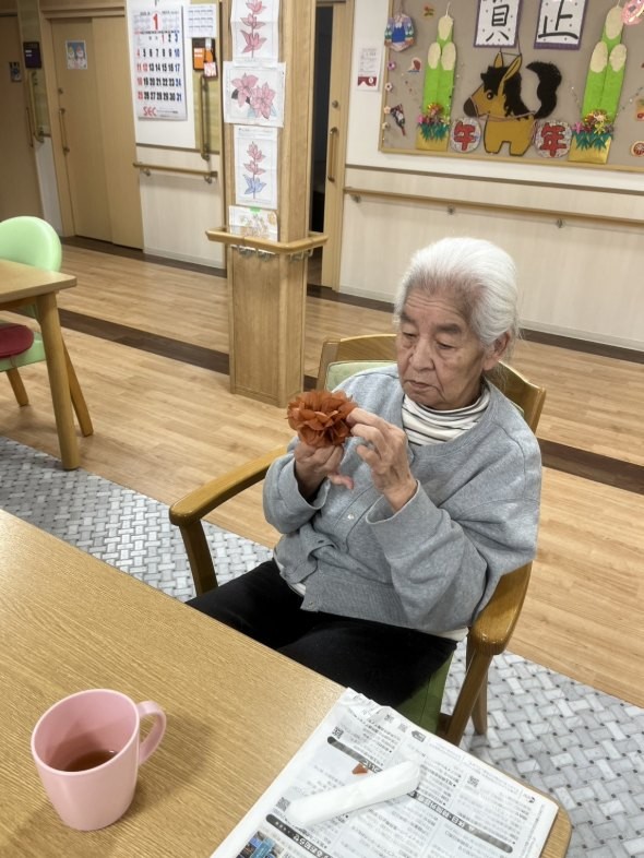 地域運営推進会議・家族会の看板をご利用者様と一緒に考えながら作りました♪今年最初の会なので「干支にしましょう」と直ぐに決定!花紙でお花を作って下さるご利用者様「馬らしさを表現したいね」と話し合いながら茶色を使ってみました(^^)「文字は華やかにしたいわね」とカラフルに塗って下さいました♪