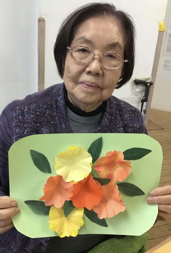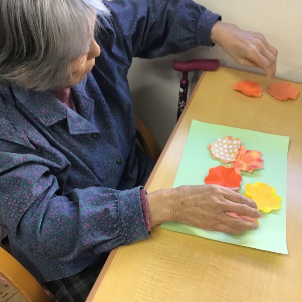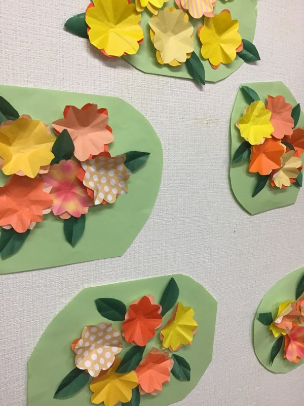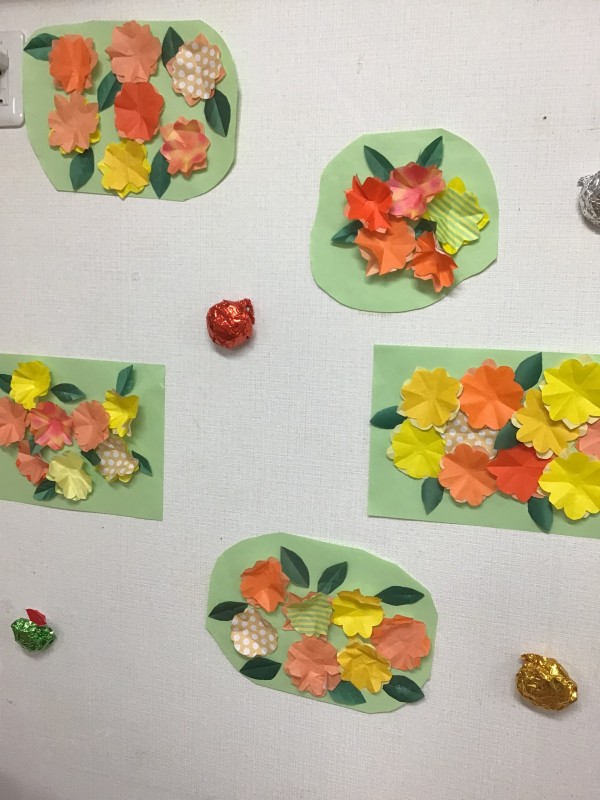 お花が出来たら、台紙に貼ってみましょう!