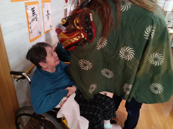 縁起物の獅子舞いがホームに来てくれました。
