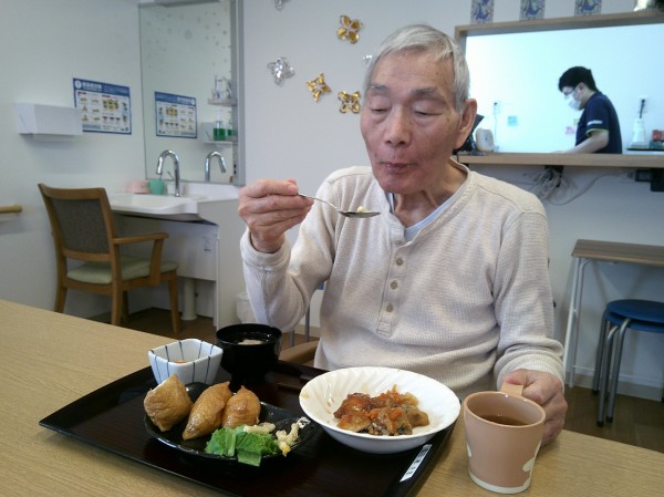 本日はおいなりさんですよ!とお声掛けすると、「おいなりさん作ってくれるんですか!?わぁうれしい楽しみ。」