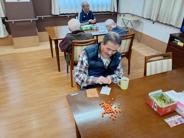 お正月も終わり次は2月の壁飾りの制作を始めました。