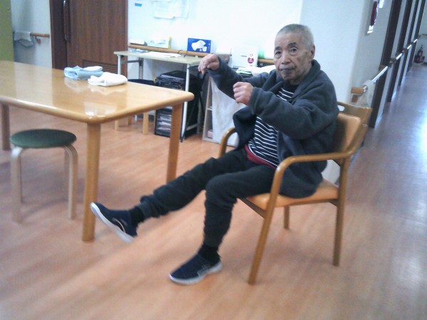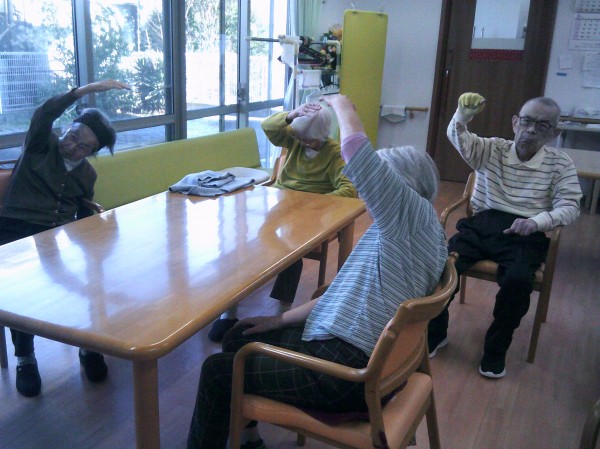 リモート体操(いきいきリズム体操)を行っているご様子です( ^ω^)・・・ ご家族様が来られ一緒に参加されています。