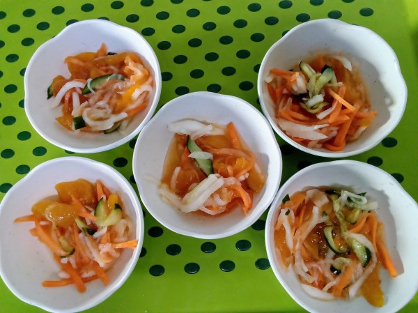 今日は干し柿のなますにしたものを皆さん一緒に召し上がりました。