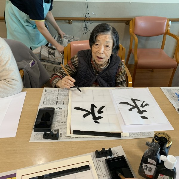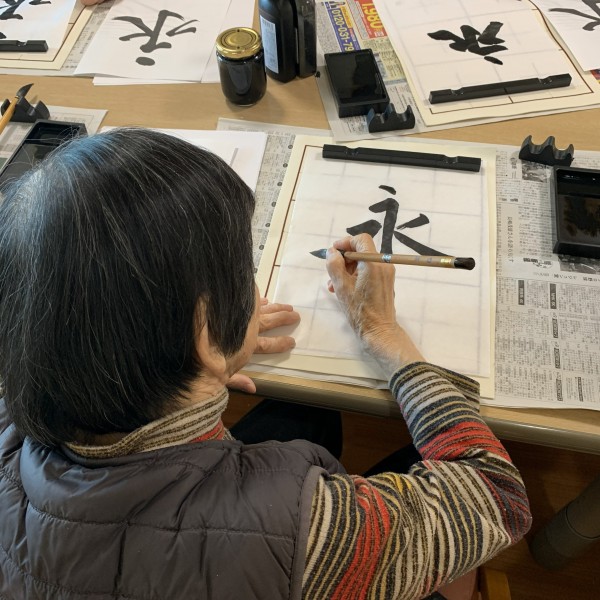 習字の先生がおいで下さり、皆さん真剣に書かれていました。