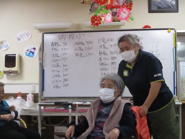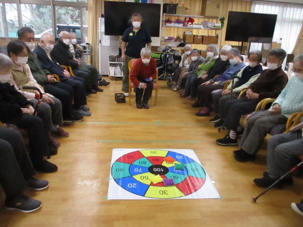 「どこを狙おうかな」「真ん中いけ」と皆様真剣な表情。投げる度に歓声や拍手が起こり、自然と応援の声も飛び交いました。点数を競いながらも笑顔と笑い声があふれ、わくわくゲームの日にぴったりの、楽しいひとときとなりました。次はどんなゲームが登場するのでしょうか?皆様の「次は何かな?」という期待が、今から高まっています♪