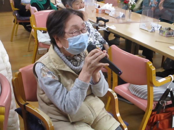 得意な歌を披露してくださる方もいれば、「久しぶりで緊張するね」と言いながらも挑戦される方、また、歌わずに拍手や掛け声、鳴り物で盛り上げてくださる方もいらっしゃいました。一曲終わるごとに大きな拍手。「上手!」「懐かしいね」「いい声だね」そんな声が自然と飛び交い、ホールは終始あたたかな雰囲気に包まれていました。