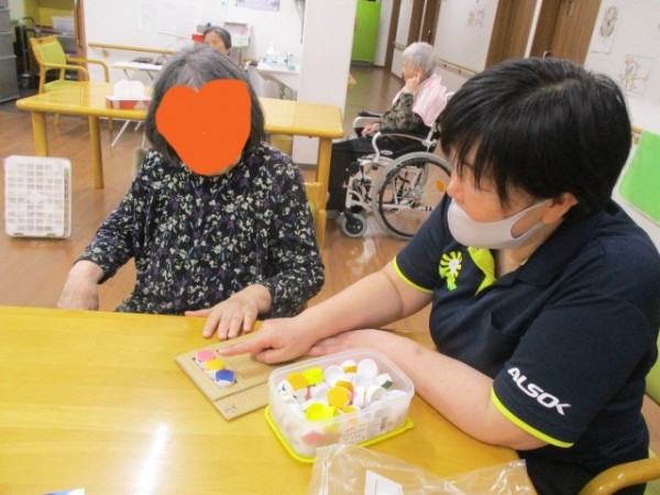 楽しみながら色を並べて合わせています。 出来たわ! と大喜びされていました(*^_^*) 満足そうでした!!