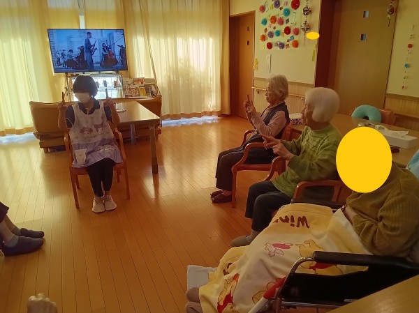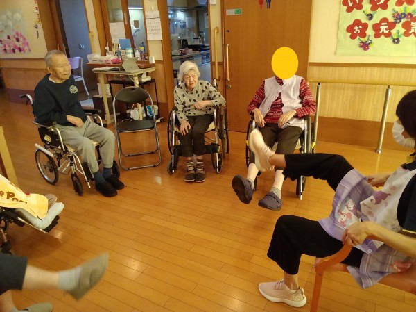 ある晴れた日、スタッフが先生となり体操レクリエーションを行いました♪