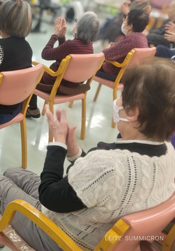 ご利用者様方の熱い視線の中、先生の伴奏に合わせて大きな声で歌ってくださいました。