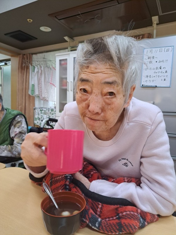 グループホームみんなの家・中野鷺宮で鏡開きにお汁粉を召し上がり皆さんあったまりました。