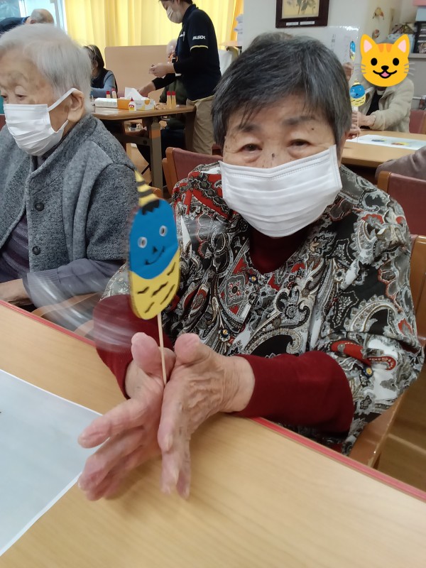 来月の節分にちなんで、「鬼のでんでん太鼓」を作りました(^O^)/