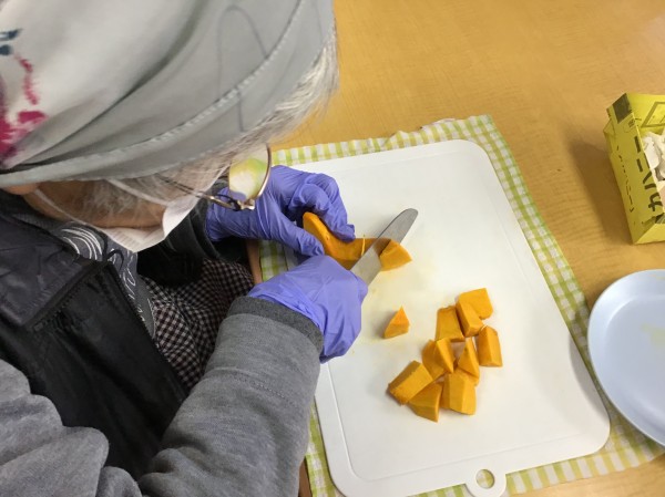 最初はカボチャを細かく切っていきましょう♪