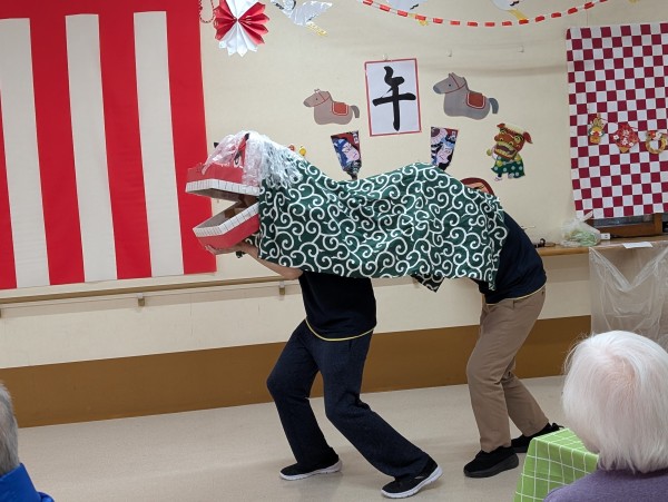 獅子舞の後は、こちらもお馴染み二人羽織をご披露~♪