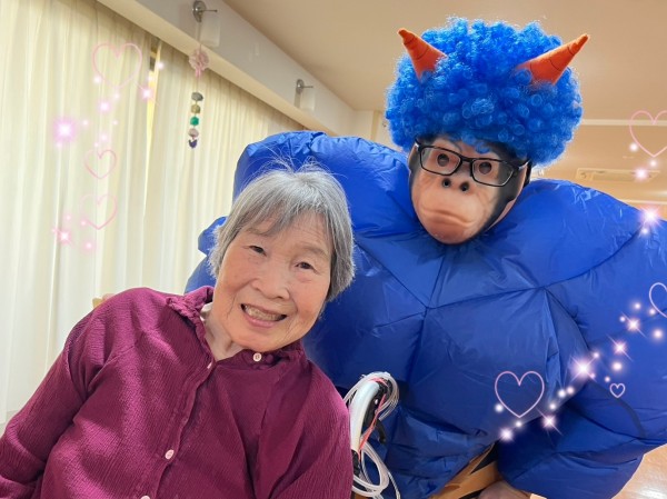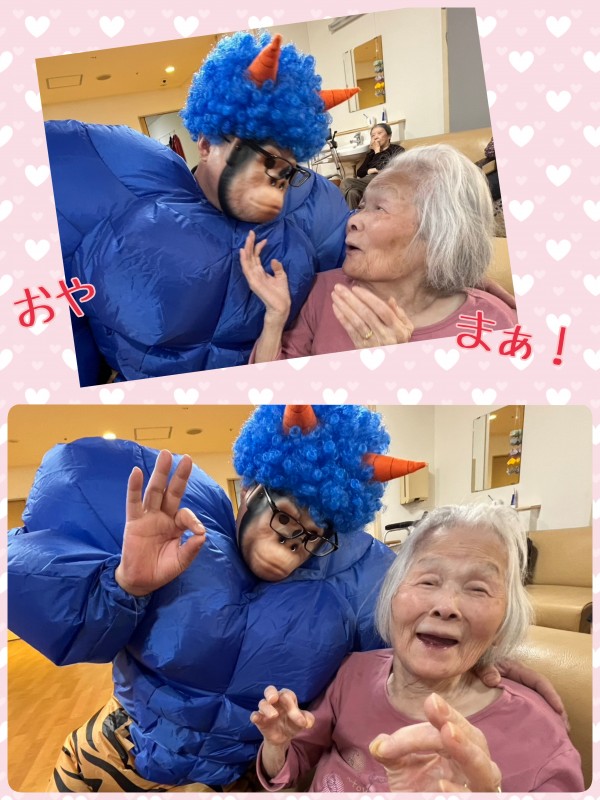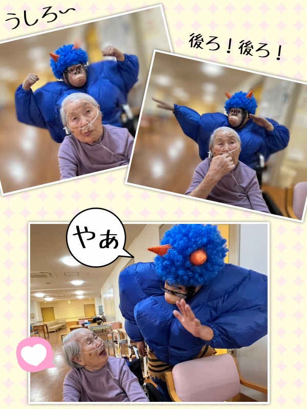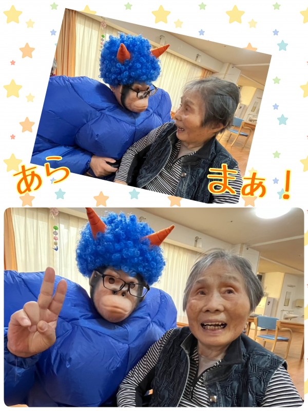 ご入居者様方に楽しんでいただきたい!と毎年趣向を凝らした鬼に変身して盛り上げてくれます。