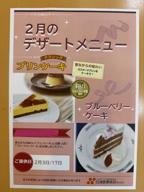 今月のイベント食は大好評のケーキです!!