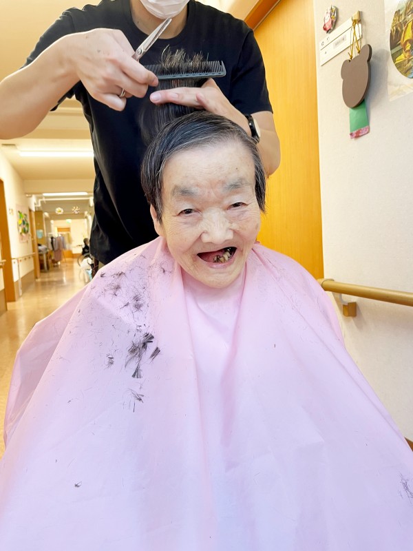 グループホームみんなの家・大宮三橋 髪を整えて、笑顔もアップ♪訪問理美容の様子