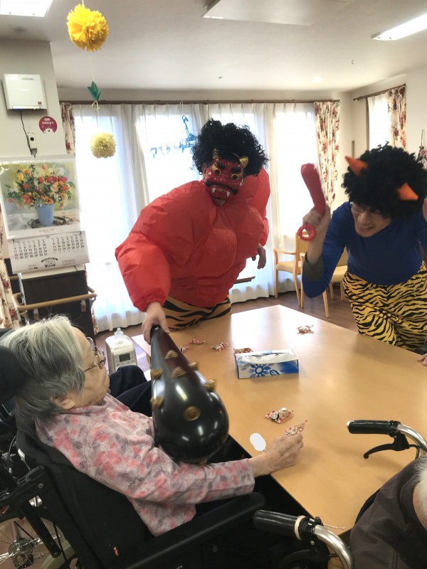 ということで、入居者様に「鬼退治」をしていただきました(*´▽`*