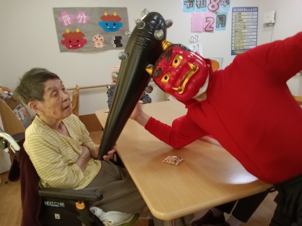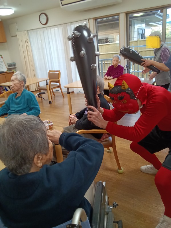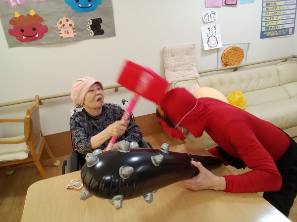 徐々にこん棒やピコピコハンマーを使い鬼退治を始めるご入居者様たち(笑)