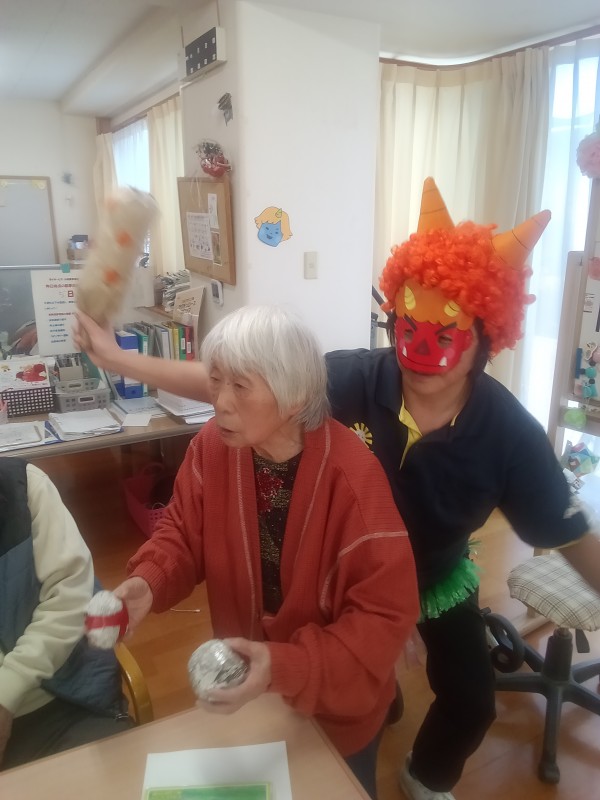クイズをしていると鬼が登場してきました。