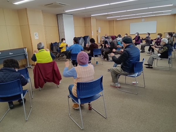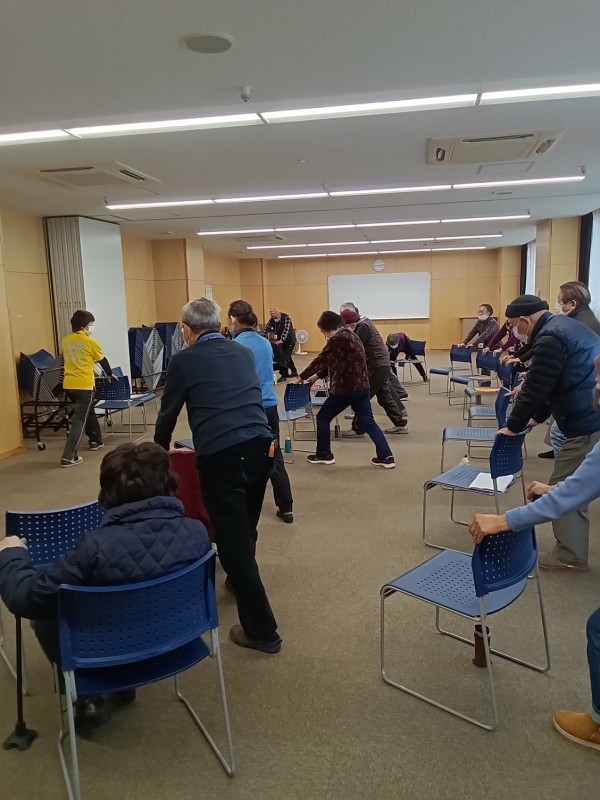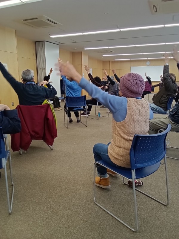 音楽をかけてエアロビクスや脳トレのコグニサイズ等先生の穏やかな雰囲気で実施されていきました。