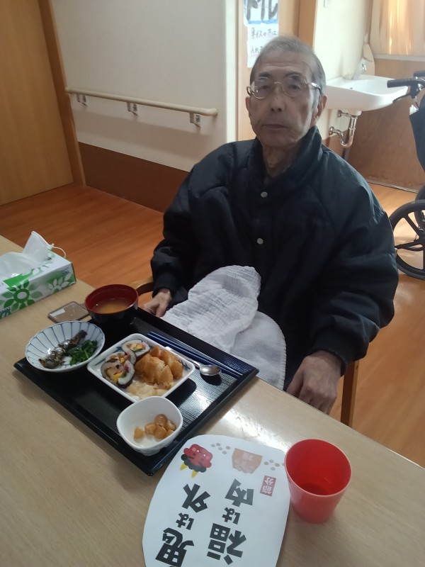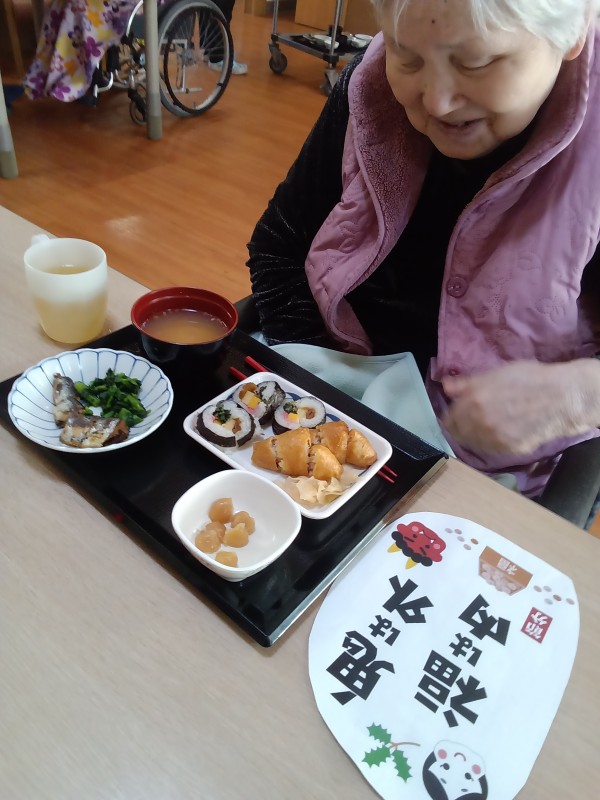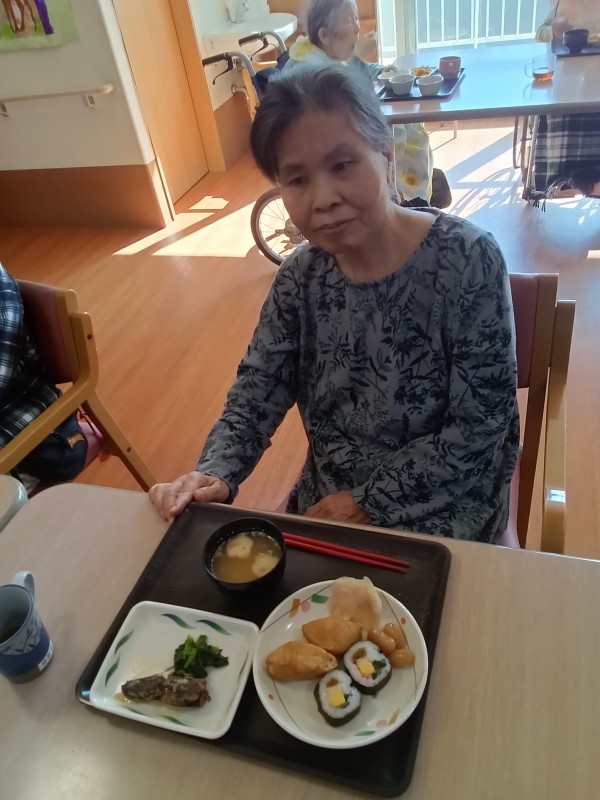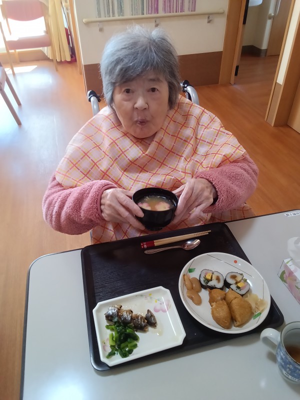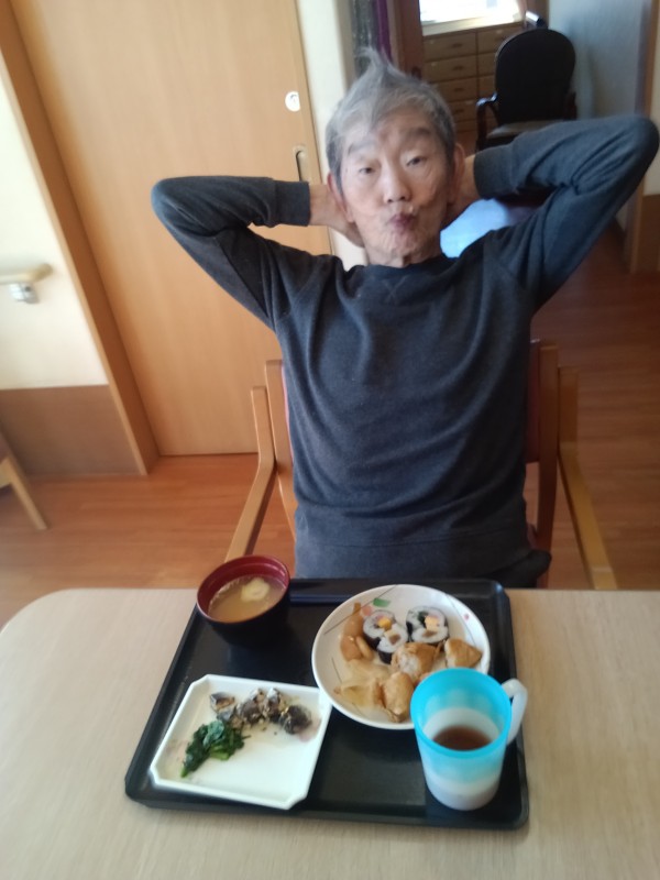 お昼ご飯は恵方巻ではありませんでしたが海苔巻きと、いなり寿司が出ました(^^)