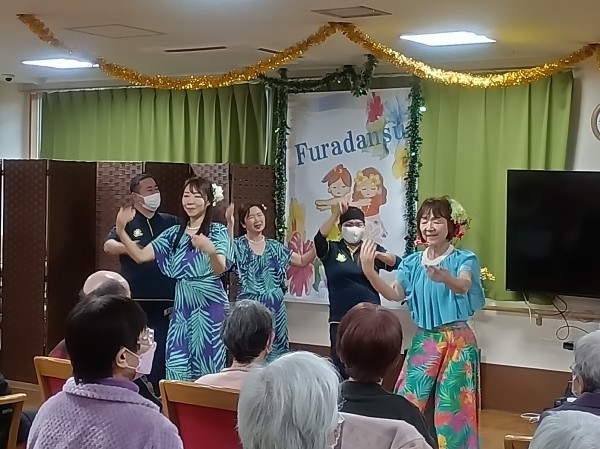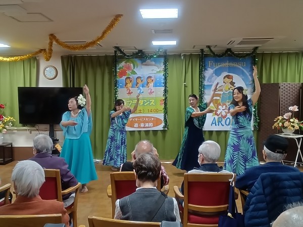 今回は遊・東浦和にフラダンスチームが来て下さいました(`・ω・´)