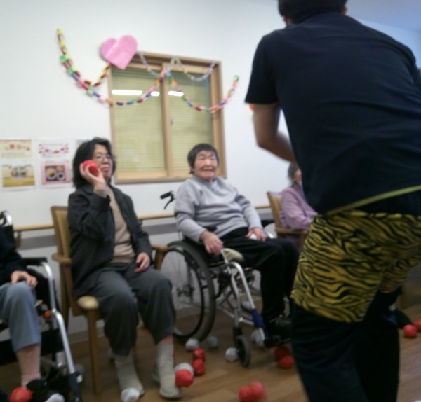 と、本当に18名のご利用者様皆様全員が、びっくりするくらい思いっきり鬼に玉をぶつけたり、投げたり、鬼の金棒を取ってお尻ぺんぺんしてきたりと、ここぞとばかりにやり切って下さり、楽しんで下さっているご様子が見受けられました。