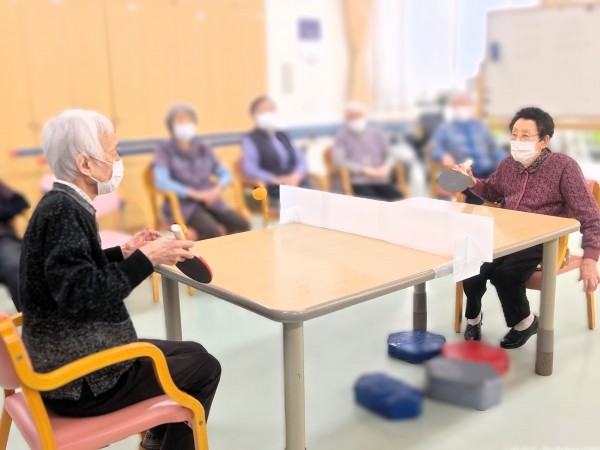 デイサービスでは色々なピンポンゲームを実施していますが本日は卓球!