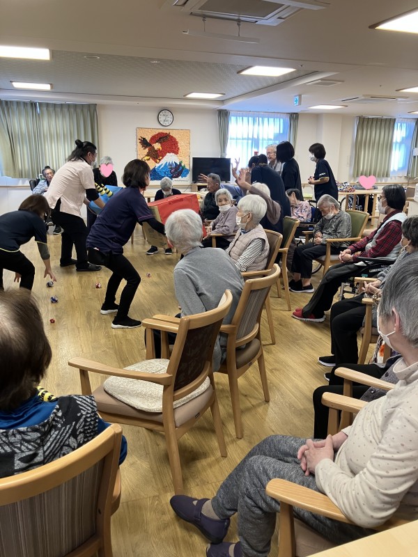 スタッフが受けに行く時もありましたけど、楽しんでいただけて良かったです。また来年も元気に豆まきしましょう。